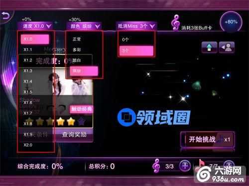 使用BUFF卡,加速最高可获得50%积分加成;变色可以改变NOTE的颜色,最高可获得30%积分加成;还可以最高抵消3个MISS,好腻害滴样纸!据说最高积分加成能到100%哦!!