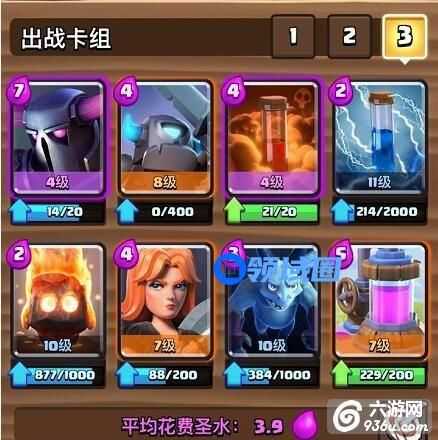 大皮卡,卡组里第一女主角,皮糙肉厚,能担当坦克;输出爆表,三下爆一座塔。但她很容易被小兵溜走,所以我带上毒药、小闪、跳蛋以及苍蝇来辅助进攻。