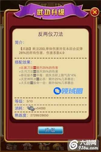 反两仪刀法—> +17%伤害 破邪剑法—> +25%伤害 比翼刀法—> +25%暴击
