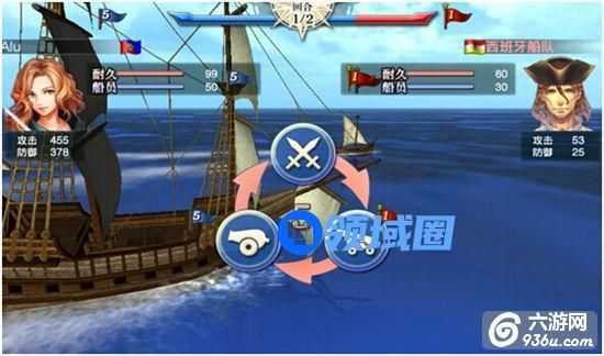 类似于二代的经典猜拳的模式。 近战,中距,远距三种属性,受船和航海士属性影响。