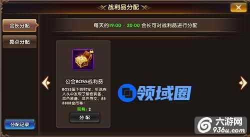 1、会长分配:每晚的19:00-20:00,会长可以对获得的公会战利品进行分配,这个时候会长们可要根据兄弟们的贡献论功行赏哦。