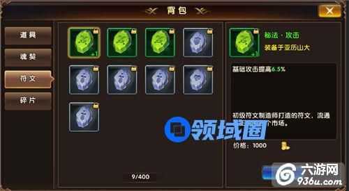 符文使用:每个英雄可以携带三块不同效果的符文,同样,佩带的符文品质越好,加成的属性就越高。