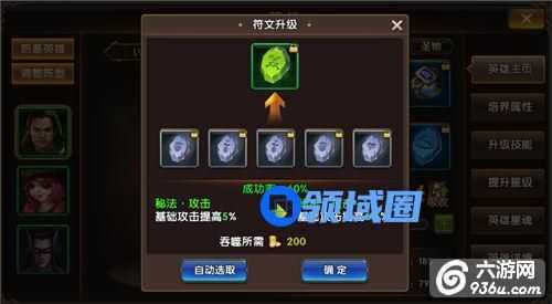 英雄佩带符文,升级符文也是提高英雄属性的重要途径之一,同样是玩家的核心玩法之一。