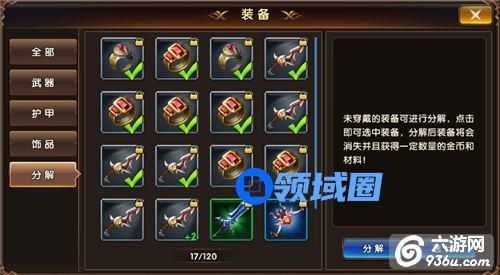 装备分解:对已有装备进行分解可以获得附魔材料,重铸材料以及金币。装备等级越高,品质越高,分解得到的材料数量越多,品质越好。