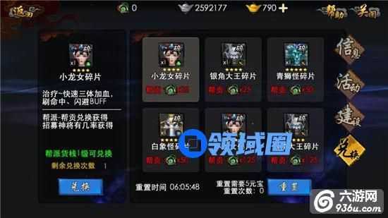 帮派兑换中有丰厚的道具物品,玩家可以用对帮派的贡献值来进行兑换;