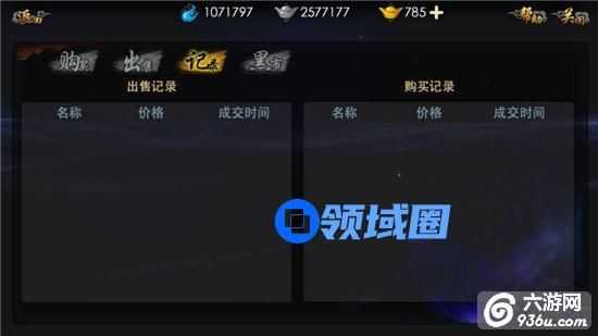 左侧的列表是玩家自己出售道具的记录,右侧是玩家购买道具的记录,所有的记录都包括名称、价格和购买时间三项内容。