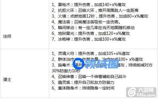 《血饮天下》中有三个职业:战士、法师、道士,每个职业都有不同的技能,详细技能如下:
