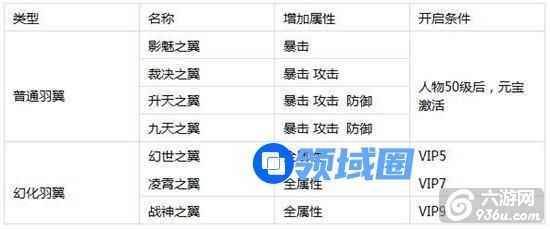 羽翼是游戏中给玩家角色美化外观、提高人物属性、增强战斗力的装备,包含有普通羽翼和幻化羽翼两个部分,羽翼属性可以叠加,羽翼越多,增加战斗力越多。