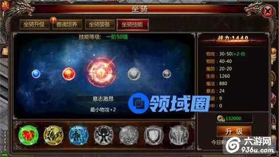 坐骑技能升级可以提高人物战斗力,升级需要消耗一定数量金币,每日有50次升级次数。