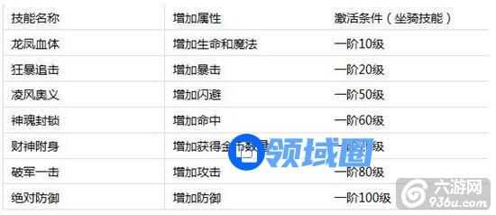 坐骑技能共有7个技能,需要强化技能等级后激活: