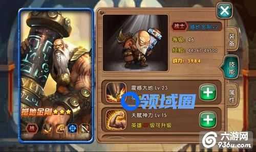 此外,【技能】选卡中显示英雄技能说明,给英雄升级技能也是在这个选卡中完成的。