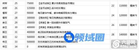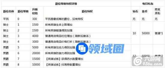 爵位系统每日礼包送不停,升级不仅有生命、攻击、防御等属性加成,还有金币、宝箱、体力等功能加成,具体升级奖励如下。