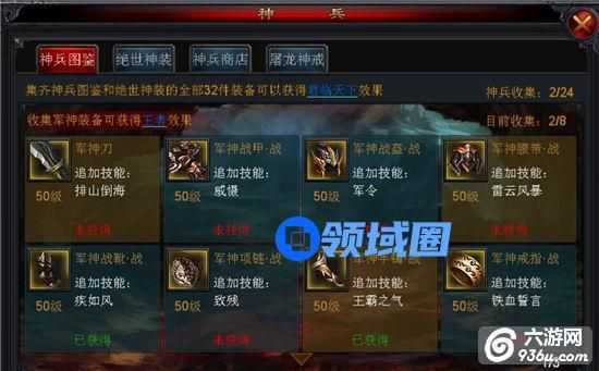 如果神兵图鉴和绝世神装均全部收集完,将获得最强大的效果。