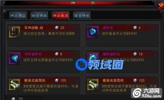 通过神兵商店可用神兵魂石兑换各种神兵装备和进阶材料
