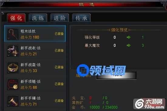 1、游戏中的每一件装备都可以强化,根据装备特点不同,强化可以使其等级、战斗力、物攻、物防、魔攻、魔防等等属性有所增益。