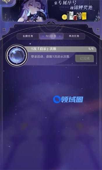 2、然后点右上角的任务获取这个抽卡次数,每天登录给一次抽卡次数。