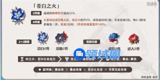 2、菲米尼的伤害主要是物理伤害冰伤占比很低,为使属于战技的高压粉碎物伤也获得加成,在选择套装时可优先选择「苍白之火4件」、「苍白2件+染血的骑士道2件」。