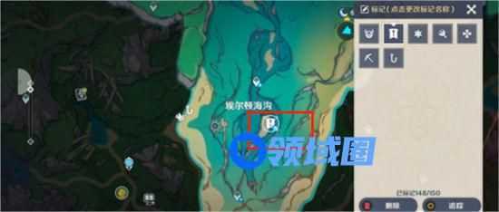 3、第三个钥匙在埃尔顿海沟的的水中,四周分布海露花。