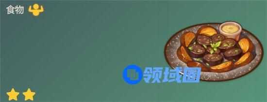 传统的枫丹菜肴。血肠的油脂感被香甜的苹果完美中和,散发出惹人迷恋的焦香,让人忍不住两眼发光连连赞叹。