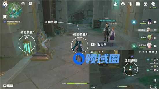 2、接着需去往遗迹底部找到储能装置1,然后进入剧情对话,结束后需去往侧面的房间内;