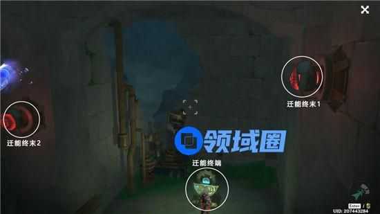 4、随后瞄准迁能终末1等待2秒,接着在瞄准并点击储能装置3和迁能终末2等待2秒;