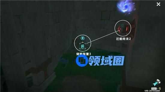 2、接着需启动储能装置1来拾取门内的储能装置2,然后去往北边启动迁能终端;