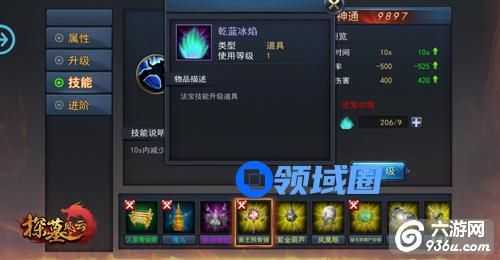 “法宝技能”技能等级也是决定法宝间差距的重要因素,并且与法宝的等级相互联系。乾蓝冰焰是能够升级法宝技能的唯一物品,它会出现在各类活动以及商城之中,当你看到它的时候,务必不要嫌多,统统买下。