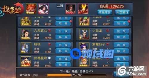 最后就是伙伴的培养了,我们可以通过消耗铜钱和伙伴灵丹来升级伙伴,伙伴升级后各项属性都会得到提升;我们还可以通过消耗对应伙伴碎片来进行伙伴的升星操作,升星可以提升伙伴品质,使其潜力、实力都得到永久的飞跃。而每进行一次升级或者升星操作时,我们都可以获得固定的“霸气值”,提升霸气强化可以获得角色的百分比属性提升,神通值提升幅度巨大!