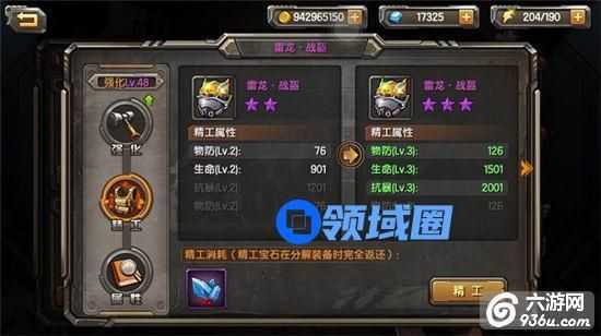 只有蓝色品质以上的装备才可以进行精工,精工一共分9级,精工等级越高,激活的精工属性越高,同时精工属性的等级也就越高。