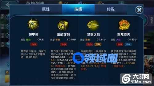被动技能-破甲矢:黄忠百步穿杨,每次击杀敌人获得5点护甲穿透,最多10层。