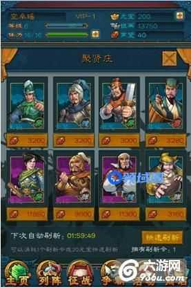 玩家在这里消耗一定的声望可招揽相应的武将,聚贤庄的武将每两小时刷新一次。