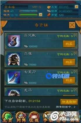 玩家在这里消耗一定的银两可购买相应的装备,奇货铺的装备每两小时刷新一次。