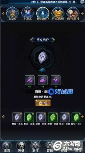 符文合成需要3个、4个或5个碎片,集齐碎片后,点击该符文下方的【合成】按钮,即可获得一个完整的符文,给英雄装备符文,提升战斗力。
