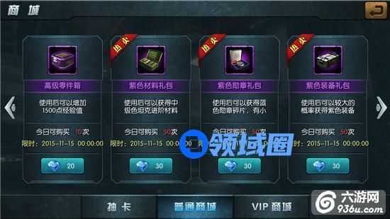 商城中出售的装备礼包,是土豪们快速获得装备的首选。真土豪们直接通过礼包就可以获得各式高级装备。穿上装备之后去打敌人,那感觉真是棒棒哒!