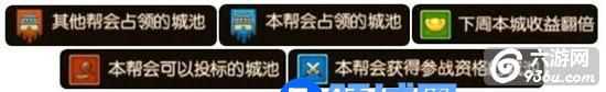 1、投标:每周日0点到周五22点可进行投标,帮会的帮主或者副帮主可使用壹萬两金票对城池进行投标,只有显示投标标记的城池才能投标