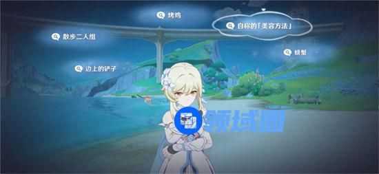 3、接着我们去后面进行对话,然后再次回到npc这里,然后开始我们的联想,先选择自称的美容方法,在选择喊给其他人听;