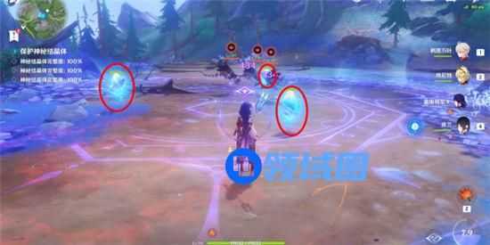 4、到达之后将裂隙中的两只兽境猎犬击败并开启挑战,之后玩家需保护3个结晶体,然后将出现的兽境猎犬击败即可完成挑战。