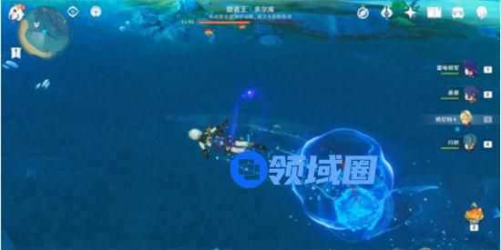 2、进入水下后先在附近获取异色膨膨兽的技能,然后长按E技能能持续吐出泡泡攻击隐者王多尔库。