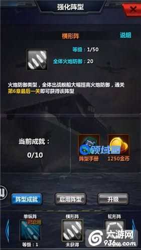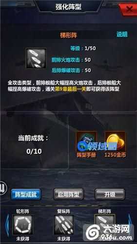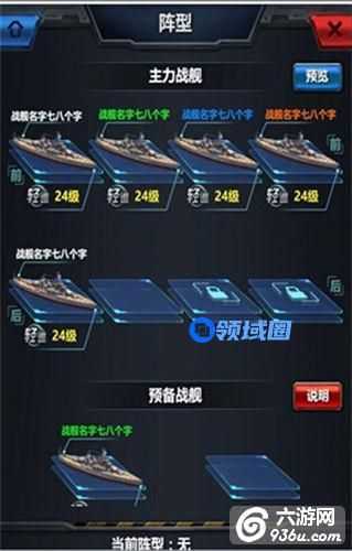 共有6种舰队阵型,每种阵型对不同位置的舰船会有不同的属性加成效果,玩家可以根据各自不同的战场需求进行选择。