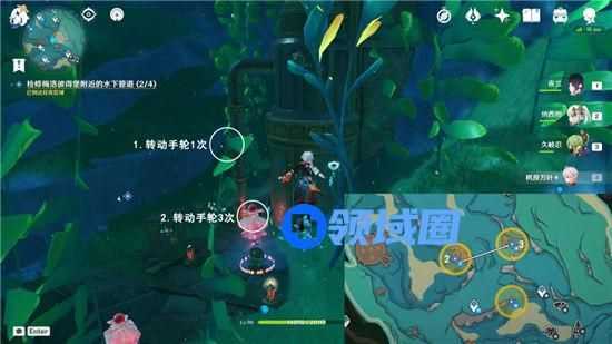 3、接着玩家需在下图标记位置及步骤转动手轮即可。
