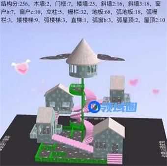 结构分:256,木墙:2,门框:7, 矮墙:25,斜墙2:16, 斜墙3:18, 窗户b:7, 窗户c:10, 立柱:5,栅栏:32,地板:68,弧地板:18,弧栅栏3,矮楼梯:9,弧楼梯:3,直梯:1, 弧窗b:3,弧屋顶:2,屋顶2:10