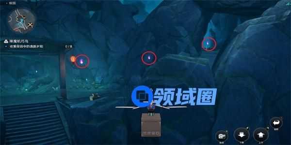 接着在沿着楼梯飞下去,在假山的附近可看见4个;