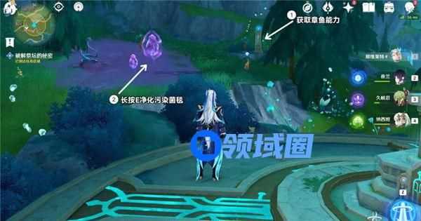 1、幽林雾道,该任务中需要前往三个位置完成清理「污染菌毯」的解密。使用操作方法为将清露泡沫推到在激活的谐律簧管旁边然后进行攻击。