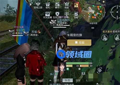 2、轨道旁,可以找到车厢边的彩色旗帜,挖掘即可获得宝藏。