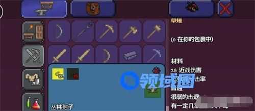 2、使用丛林孢子和小毒刺,合成草雉剑。