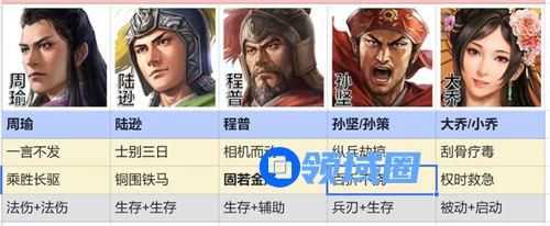 带大乔的情况下就是四前排+主输出周瑜,前排陆逊直接带俩肉战法靠自带的连营输出即可。周瑜如果带的是五雷轰顶虽然伤害很夸张但很容易站位靠前被对面单点针对,所以一定需要程普固若金汤援护一下。