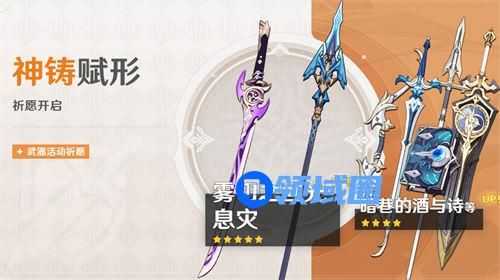 ●活动期间,可使用「神铸定轨」对本期5星UP武器「长柄武器·息灾」或「单手剑·雾切之回光」进行定轨,更多「神铸定轨」详细规则可点击祈愿界面左下角【详情】按钮进行查询。