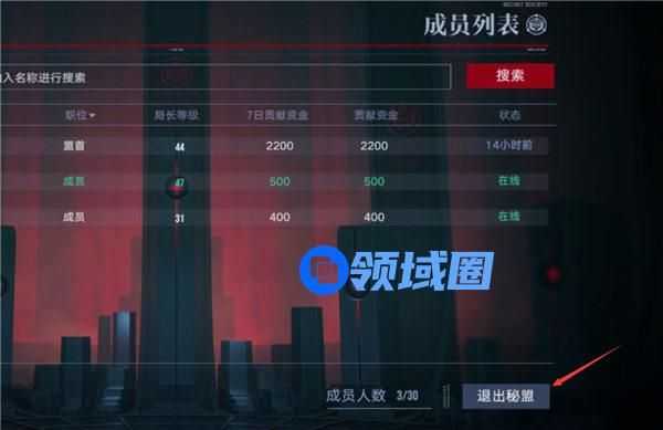 在成员列表页面选择“退出秘盟”就可以了。