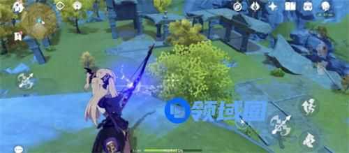 2、玩家先去这个最矮的山头,这个山头会有树遮挡,然后你对着遗迹守卫打两下,突然一个深渊法师就出现在你面前,此时切凝光,开屏障阻挡法师的泡泡攻击并破盾;