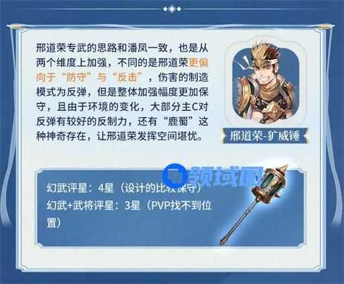 邢道荣刚出生时存在感不如潘凤,但是由于独特的反弹属性,在后期PVE中拥有不错的上镜率,作为蓝将而言显然是出类拔萃的。